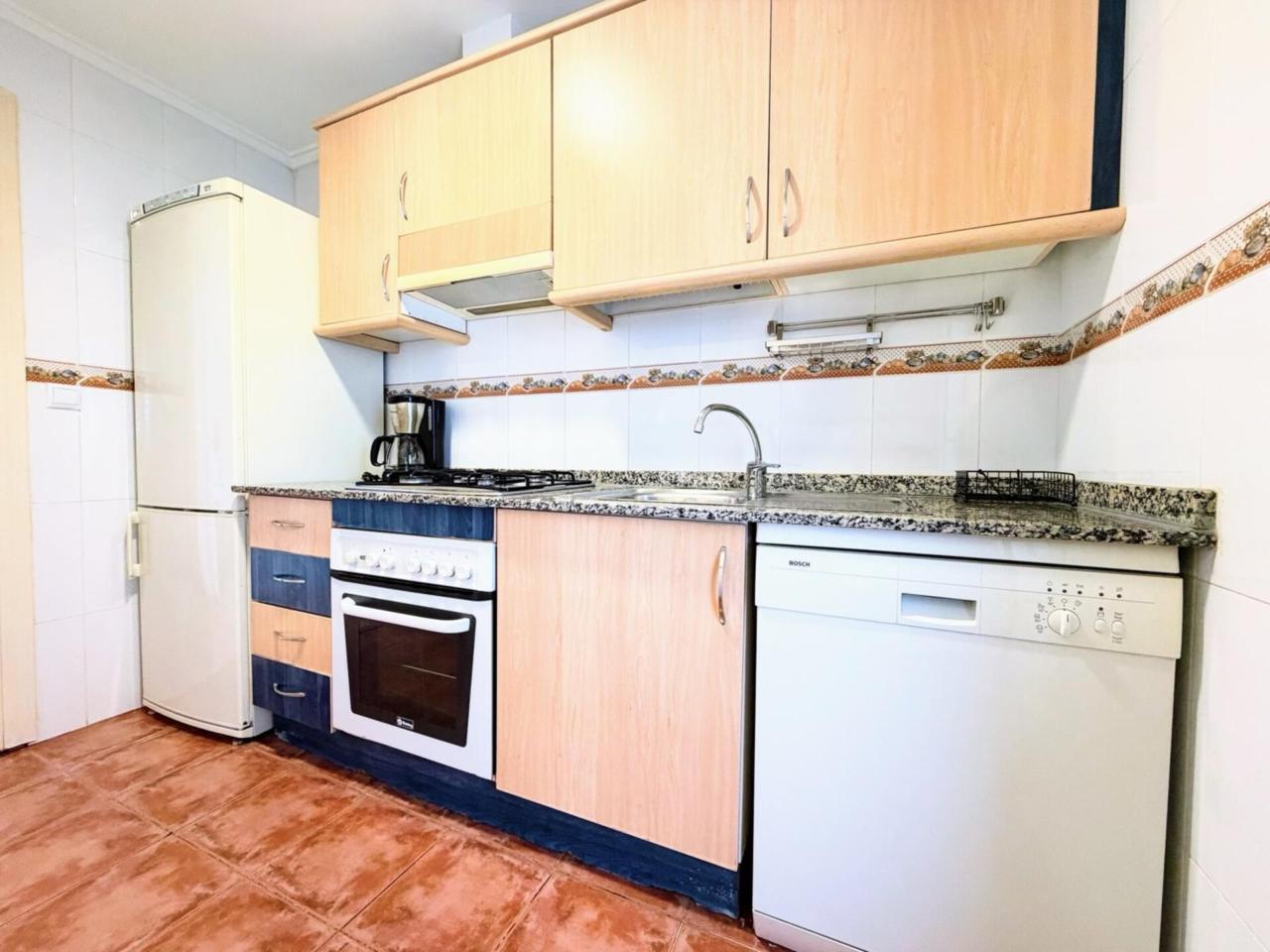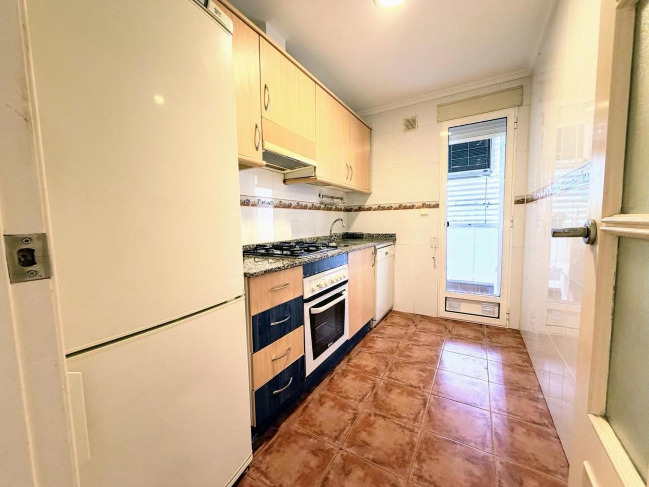 La vivienda resulta especialmente agradable por su distribución y por la calidez de sus materiales. El salón-comedor, de unos 20 m², es un espacio cómodo y luminoso que invita a disfrutarlo tanto en el día a día como al recibir visitas. La cocina está totalmente equipada con electrodomésticos y cuenta con lavadero acristalado, muy práctico para el uso cotidiano.
